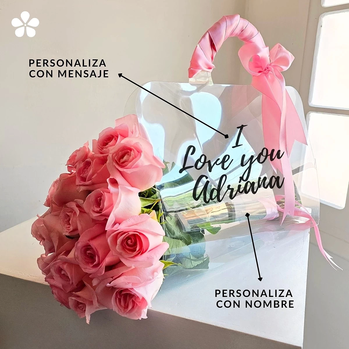 Este delicado ramo de 25 rosas pastel premium transmite amor, ternura y admiración en su máxima expresión. Presentado en una bolsa transparente tipo handbag que realza la belleza natural mientras añade un toque contemporáneo y chic. Completamente personalizable para convertir este regalo en un recuerdo exclusivo.