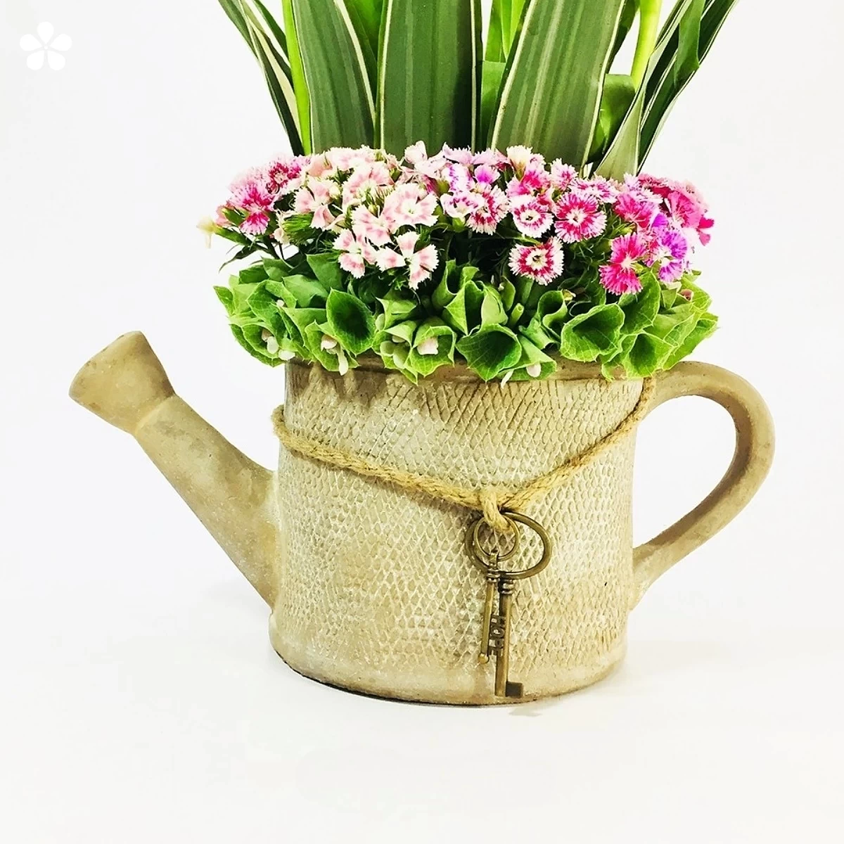 Una regadera cerámica con tulipanes, florecitas y follajes delicados. Dulce y soñadora, perfecta para sorprender.